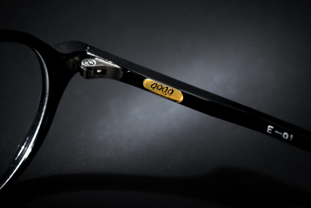 The first models. “E-01” and “E-02,” were finally completed after bringing design drawings to factories in Sabae City, Fukui Prefecture — one of the world’s leading eyewear production centers — and repeating numerous revisions and prototypes. Released in 1995, these two frames were innovative plastic designs that not only fit the Asian skull but also featured varying thickness in the temples. This concept created elasticity in the temples, enhancing the overall fit. In addition, the temple tips were rounded to provide a gentle initial contact when putting the glasses on. These features — the variation in temple thickness and the consideration given to the temple tips — remain part of Four Nines’ core design philosophy even 30 years later.